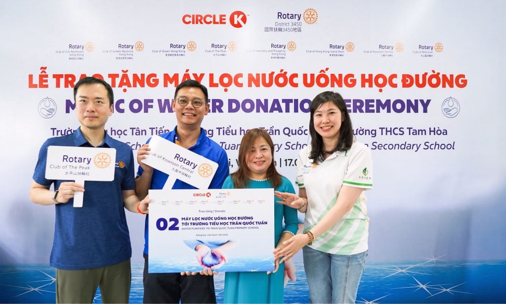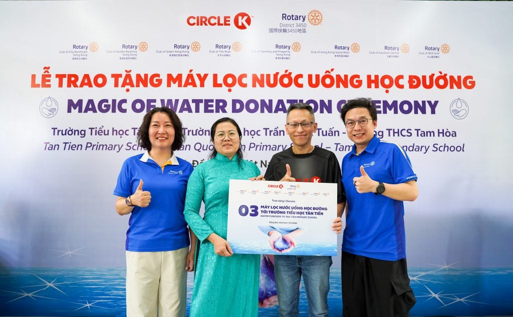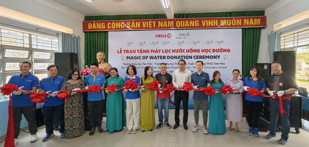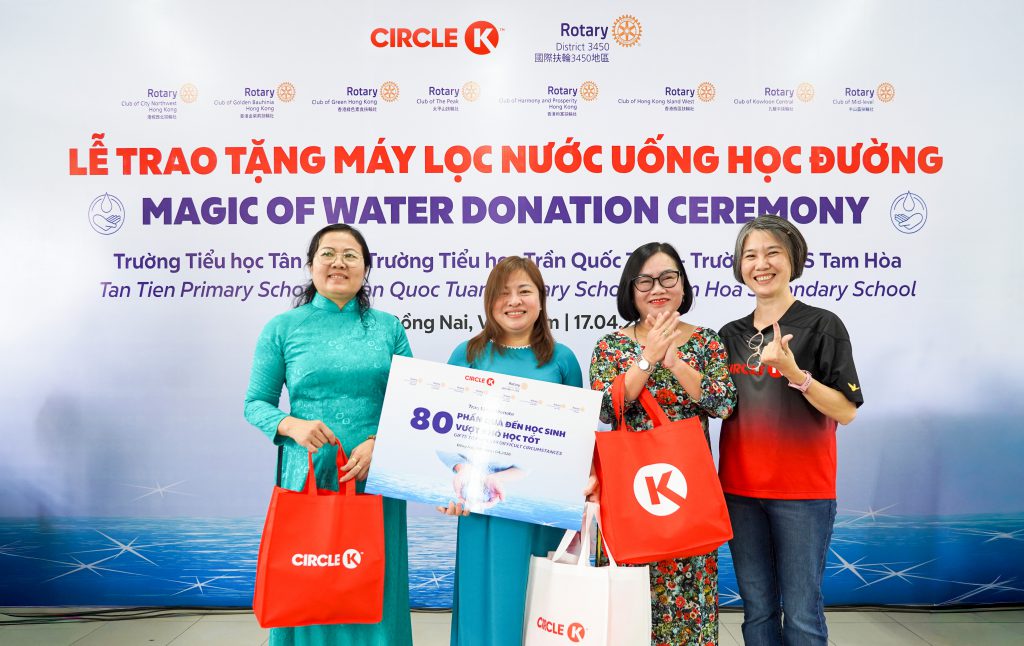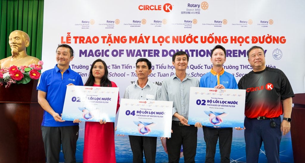Circle K Vietnam continued its collaboration with 08 Rotary Clubs from Hong Kong to expand the initiative “Magic Of Water” to donate water purifiers to three schools: Tan Tien Primary School, Tran Quoc Tuan Primary School, and Tam Hoa Secondary School. After 2 years of operation “Magic Of Water” provides access to quality drinking water for nearly 6,000 pupils and teachers in Dong Nai Province.