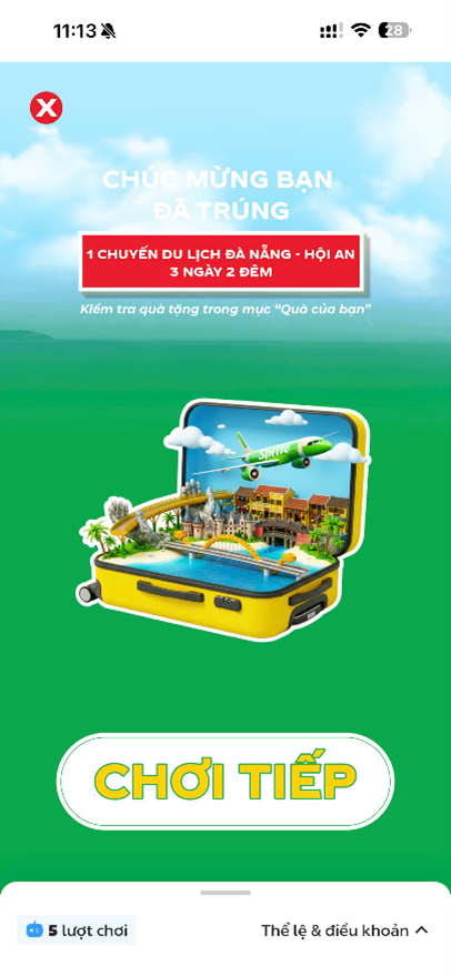+ Khách hàng có thể kiểm tra lại các thông báo trúng thưởng tại mục “Quà của bạn”.
