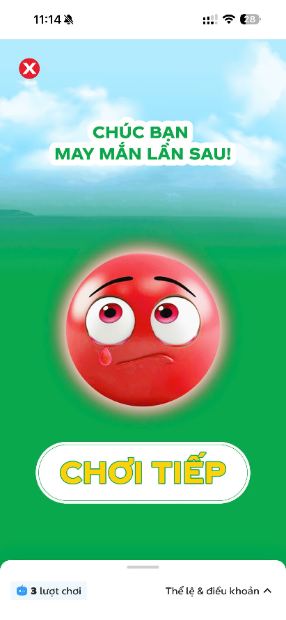 - Bằng chứng xác định trúng thưởng là màn hình thể hiện số lượt quay mà khách hàng đạt được như hình 7 và hình 8.