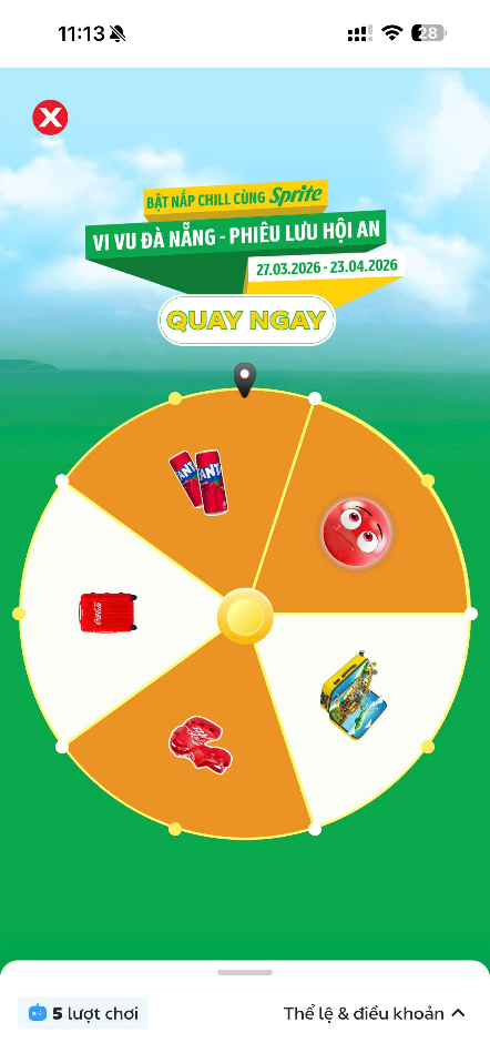- màn hình hiển thị lượt quay như sau (Lượt quay là hình “BẬT NẮP CHILL CÙNG SPRITE – VI VU ĐÀ NẴNG, PHIÊU LƯU HỘI AN”: