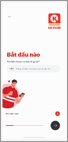 Sau khi cài đặt hoàn tất ứng dụng CK Club trên điện thoại, khách hàng tiến hành đăng ký tài khoản CK Club. Màn hình giao diện hiển thị như sau: