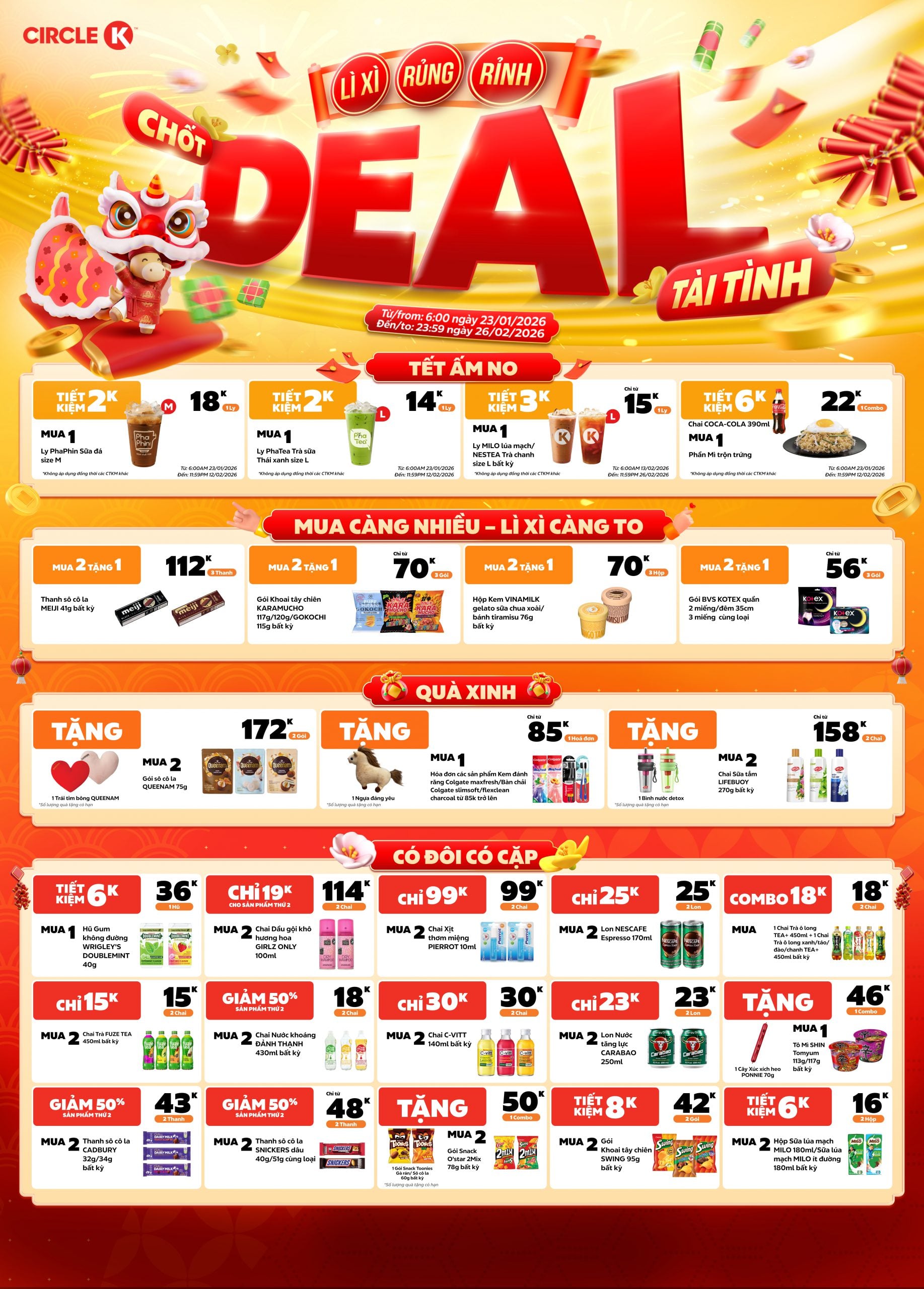 Có hiệu lực từ 6AM 23.01.2026 đến 11:59PM 26.02.2026